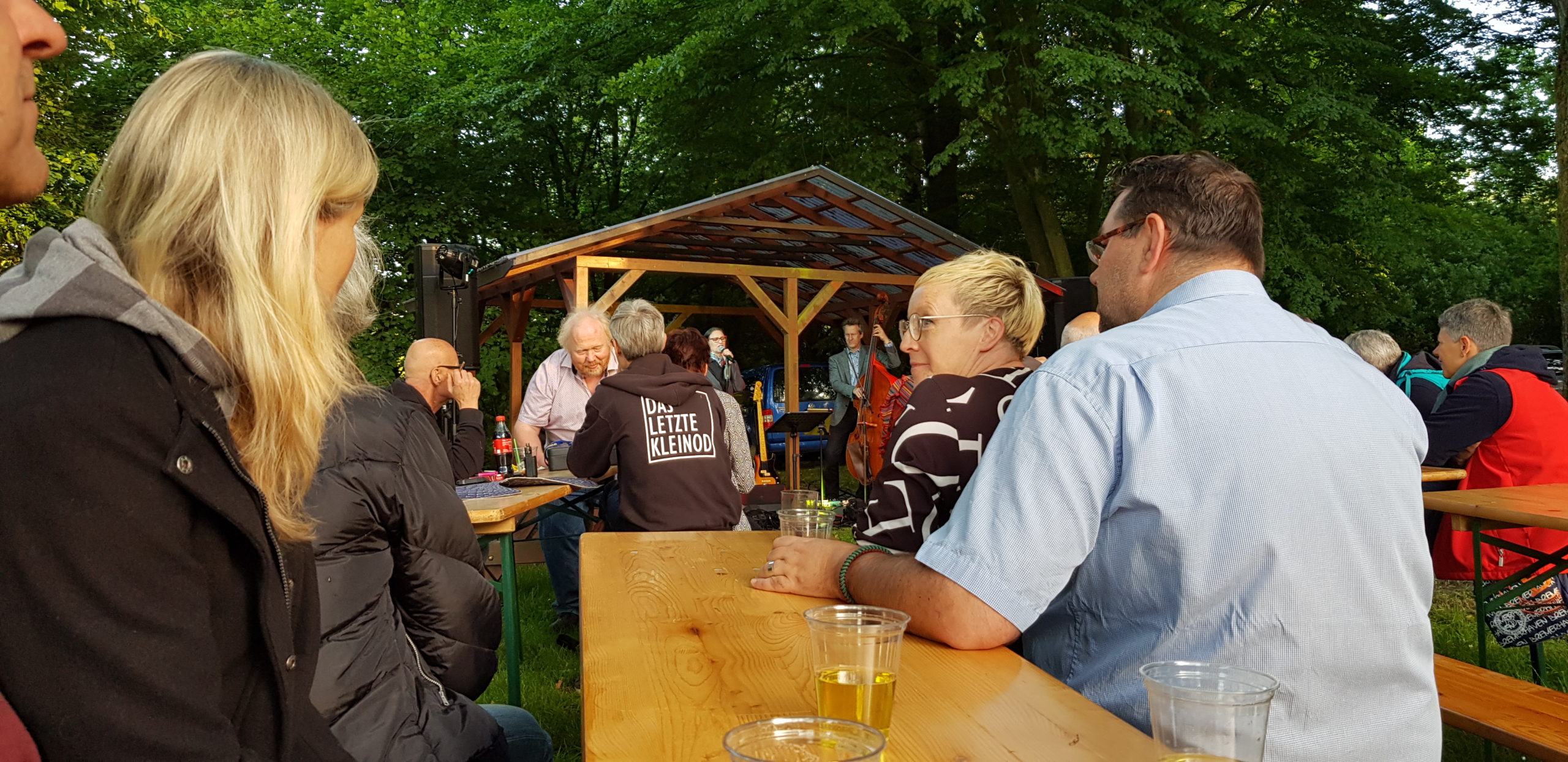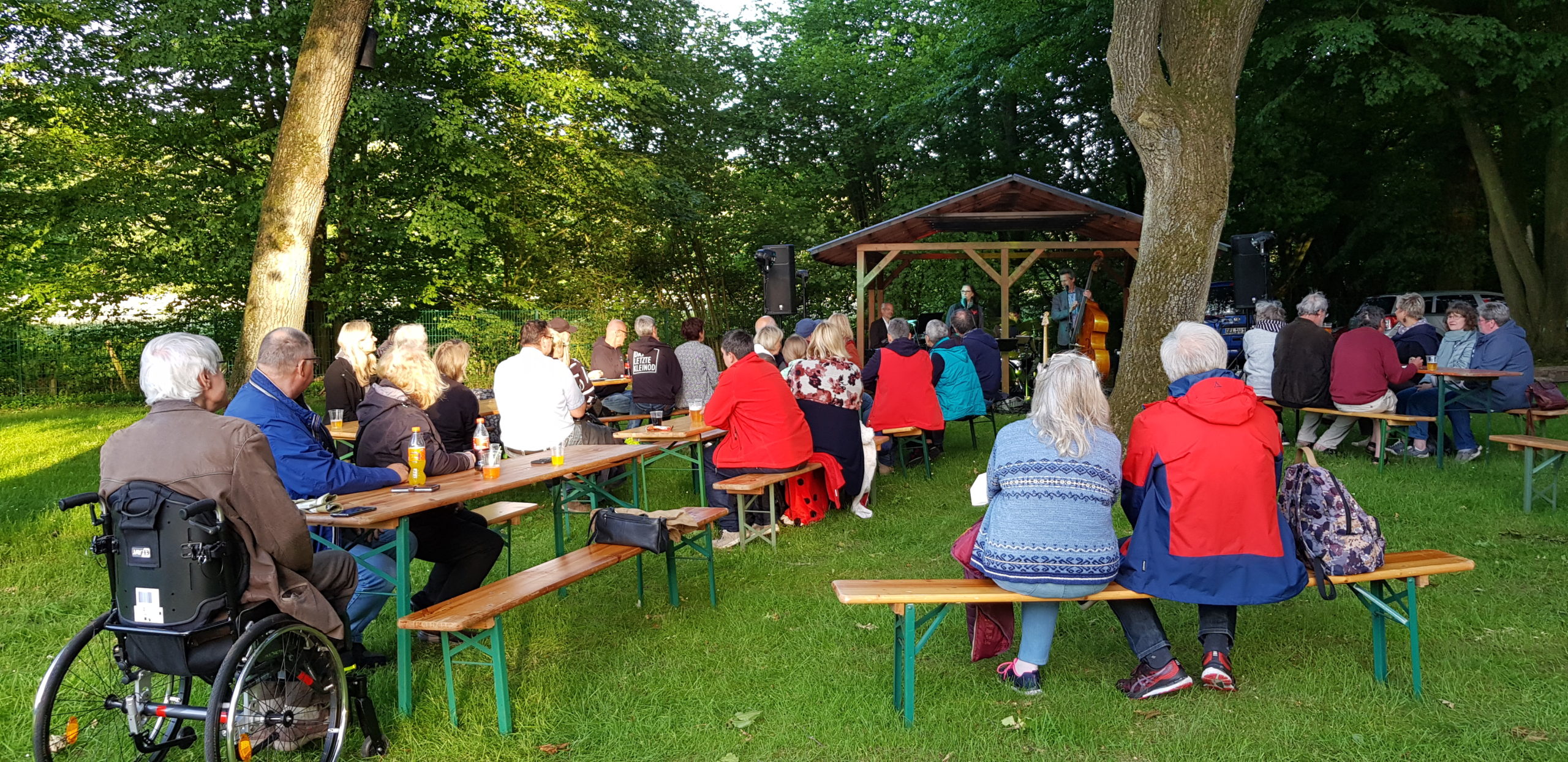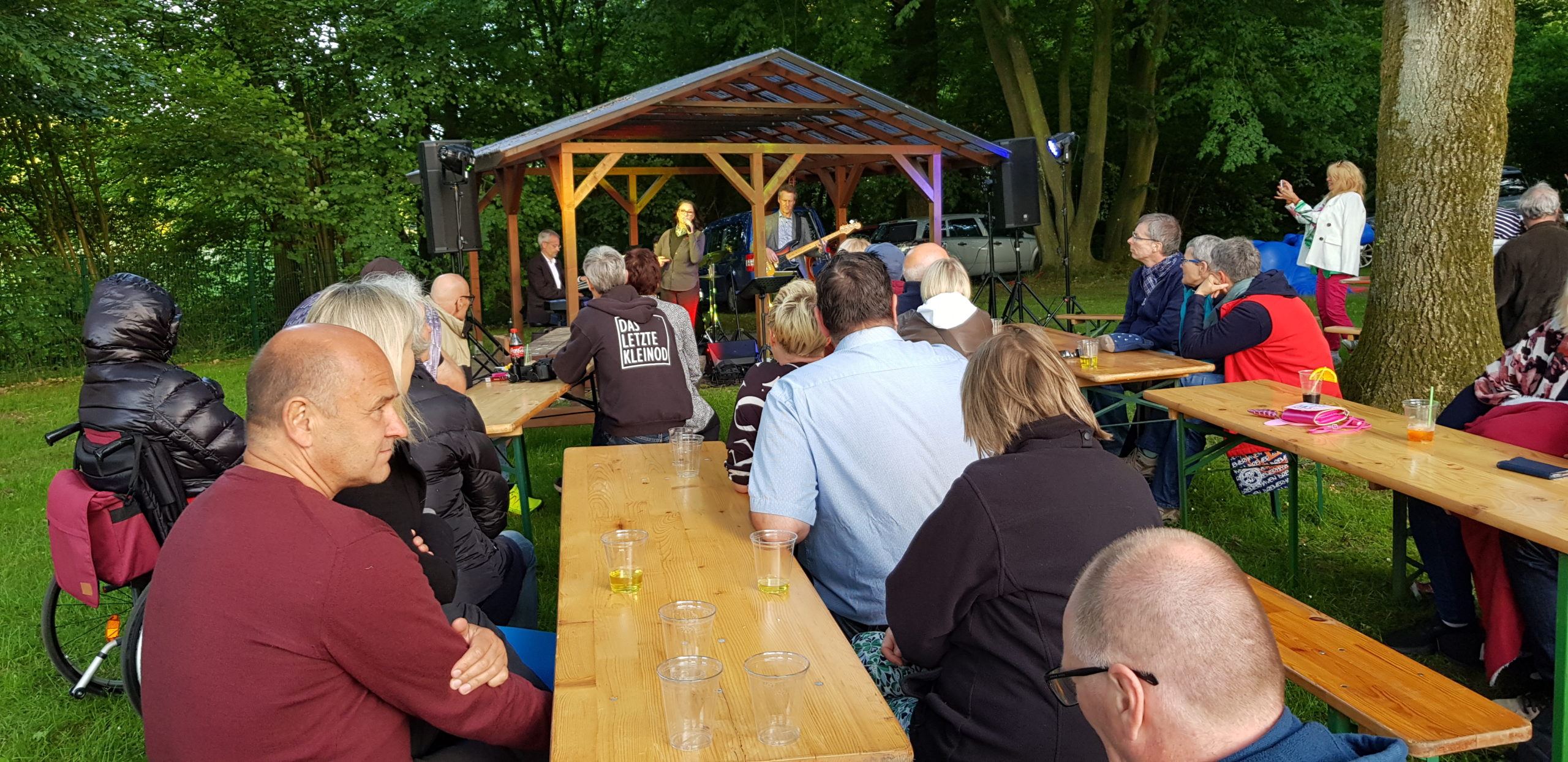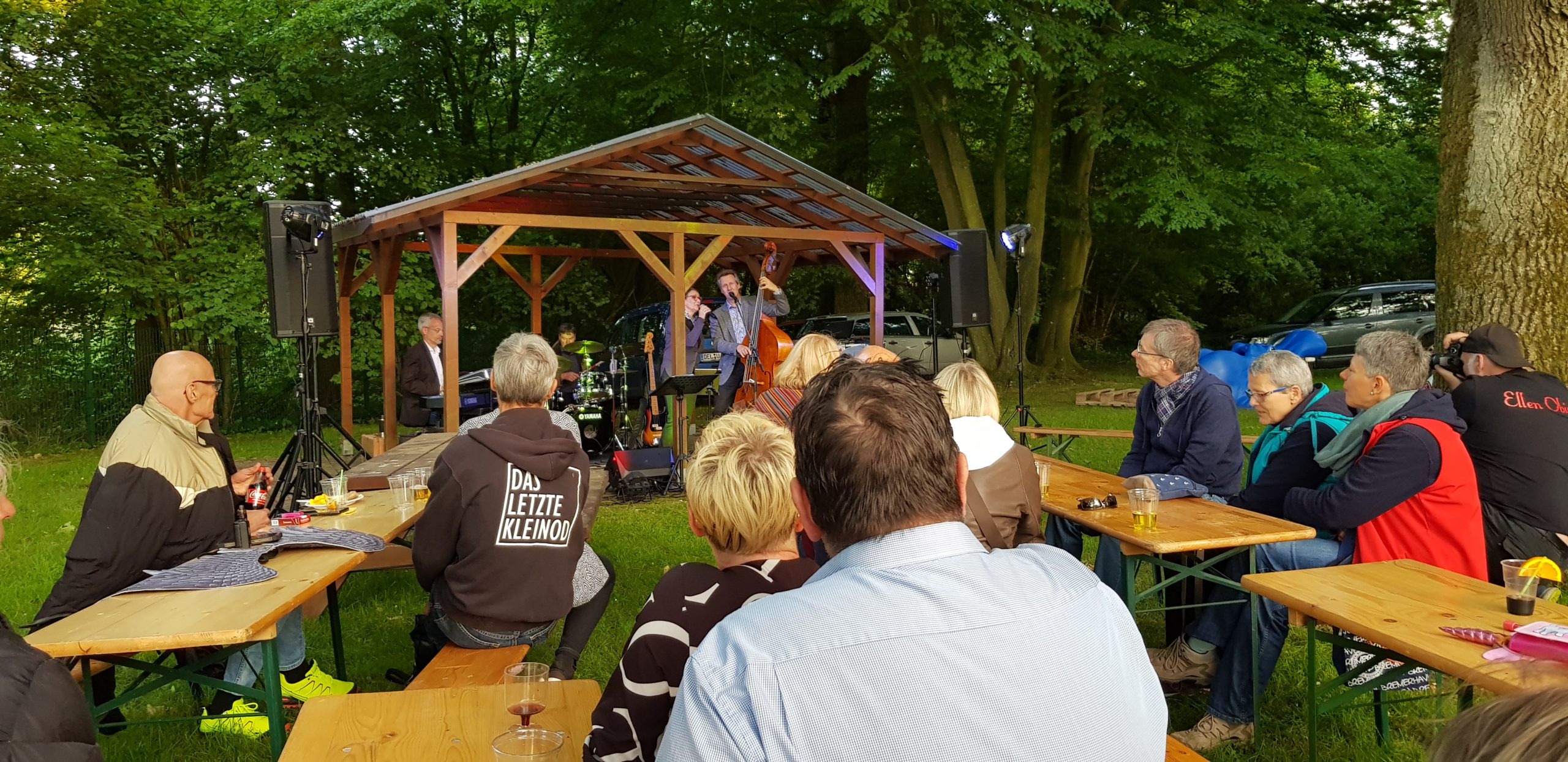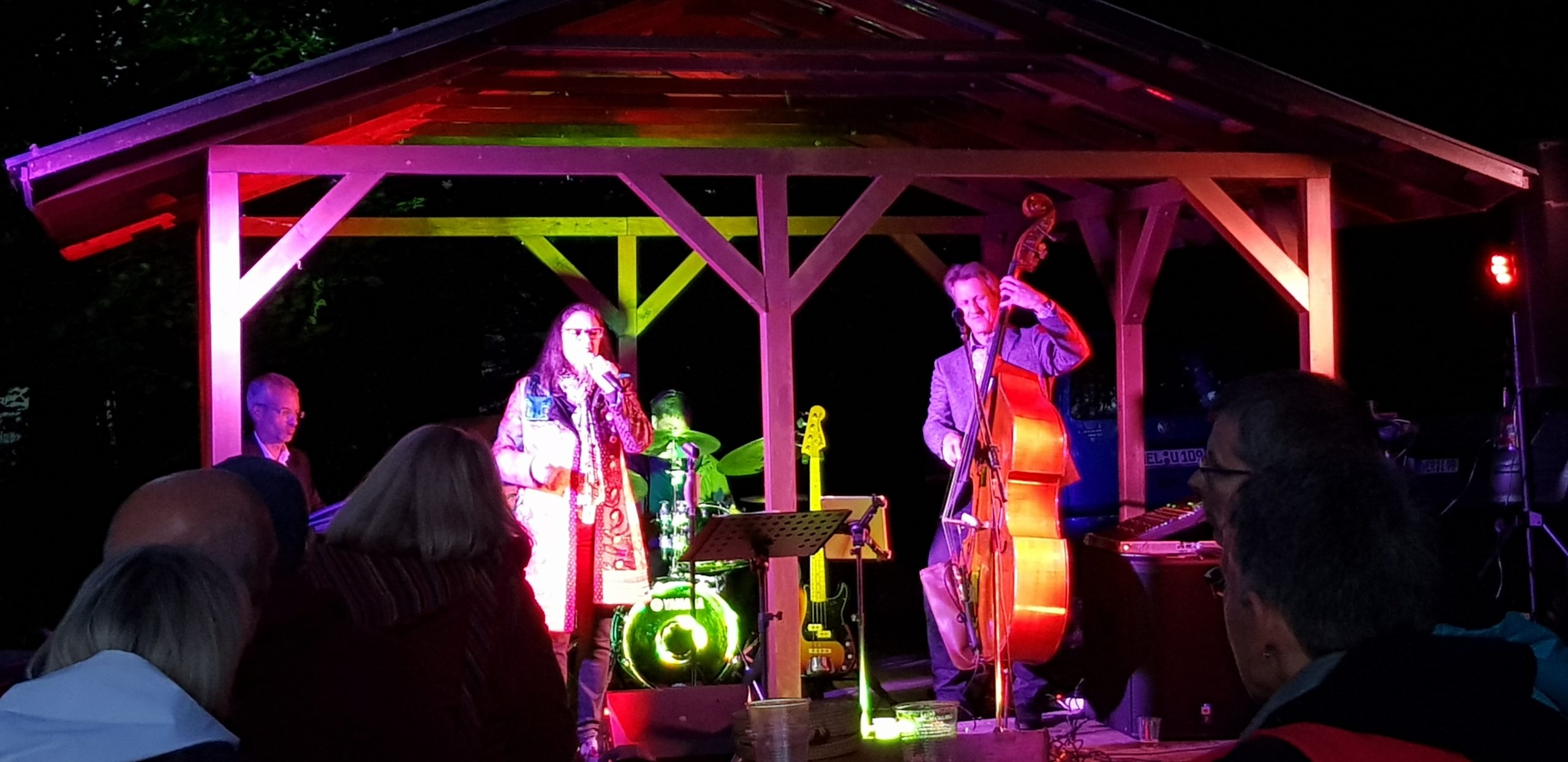 Am Samstag Abend war es soweit: Auf der Bühne im Waldbadareal gaben Ellen Obier und das anySwing Trio ein tolles Konzert mit vielen Evergreens und selbst arrangierten Liedern.