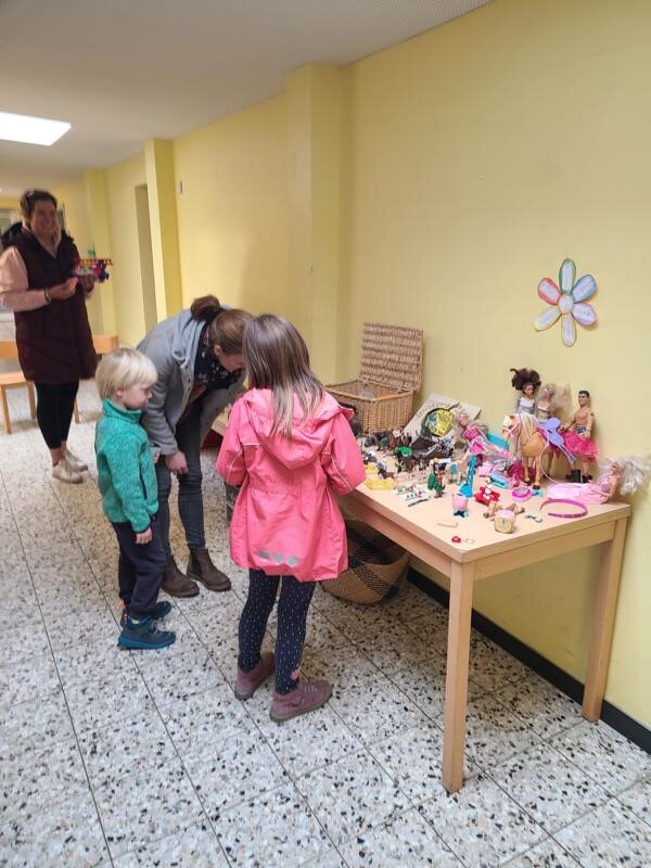 Im Flur hatte Frau Melanie Behnken mit großer Sorgfalt eine Spielzeuglandschaft aufgebaut, die jedem Kinderzimmer Konkurrenz machte. Kinder zwischen 3 und 12 Jahren brachten sauberes, gut erhaltenes Spielzeug mit – und verließen den Hort mit neuen Schätzen und einem breiten Grinsen. Bis zu fünf Spielzeuge durften abgegeben und wieder mitgenommen werden.