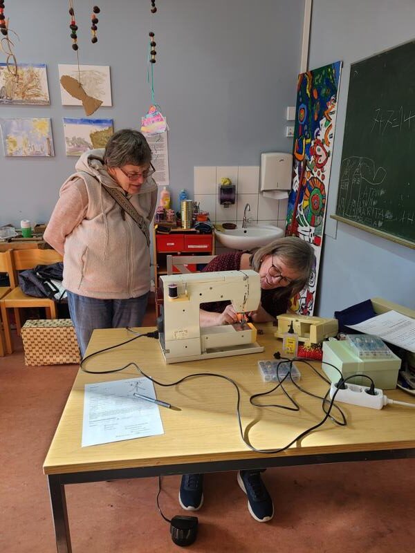 Und während die Schrauber*innen rotierten, war auch unsere Nähmaschinen-Expertin im Dauereinsatz. Sogar eine Arbeitshose wurden im Akkord operiert.