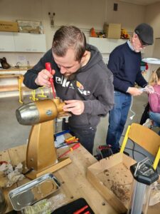 Parallel dazu trafen nach und nach die Erwachsenen aus Bokel und den umliegenden Gemeinden ein – von Sandstedt über Lunestedt bis hin zu Hagen, Beverstedt und Driftsethe war alles vertreten. Im Gepäck hatten sie eine bunte Auswahl an reparaturbedürftigen Schätzen: Lampen, Staubsauger, Radios, Fahrräder, eine nostalgische Wandlampe, eine Astschere und gleich mehrere Kaffeemaschinen, die offenbar dringend auf ihren „Wiederbelebungskaffee“ hofften.