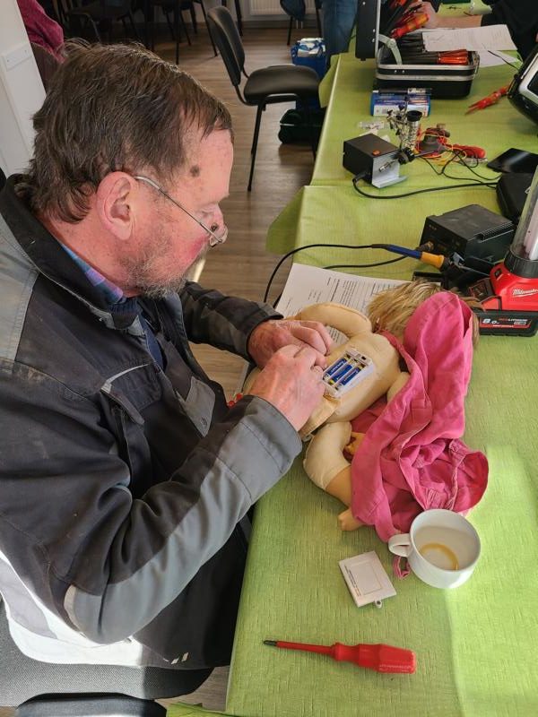 Bei den restlichen Gebrauchsgegenständen wurden die Fehler gefunden, jedoch bei manchen fehlte das Ersatzteil oder es wurde festgestellt: Das Gerät ist nicht reparabel. Diesmal waren im Angebot: Stehlampe, Bohrmaschinen, Akku-Schrauber, Uhr, Toaster, Dia Projektor, Grill, Smart TV, Papierschredder, elektrische Zahnbürste, Staubsauger, Kettensäge, Weihnachtsstern , Radio, Simson Moped, Radiowecker, Nähmaschinen, um nur einige Gebrauchsgegenstände zu nennen. Sogar die Nähmaschine im Schrank aus Hannover konnte von Heidi repariert werden. Die Anreise hatte sich gelohnt.