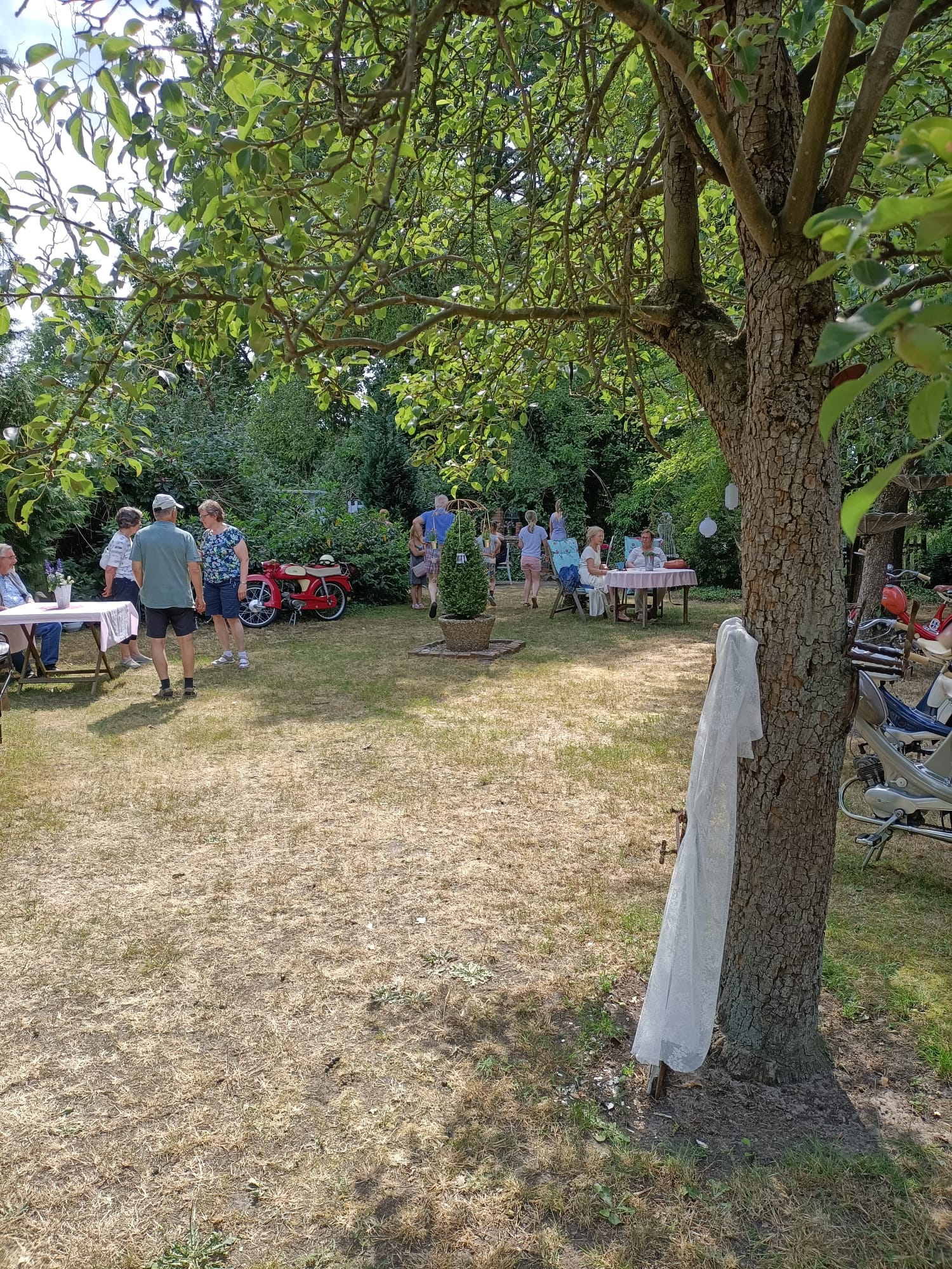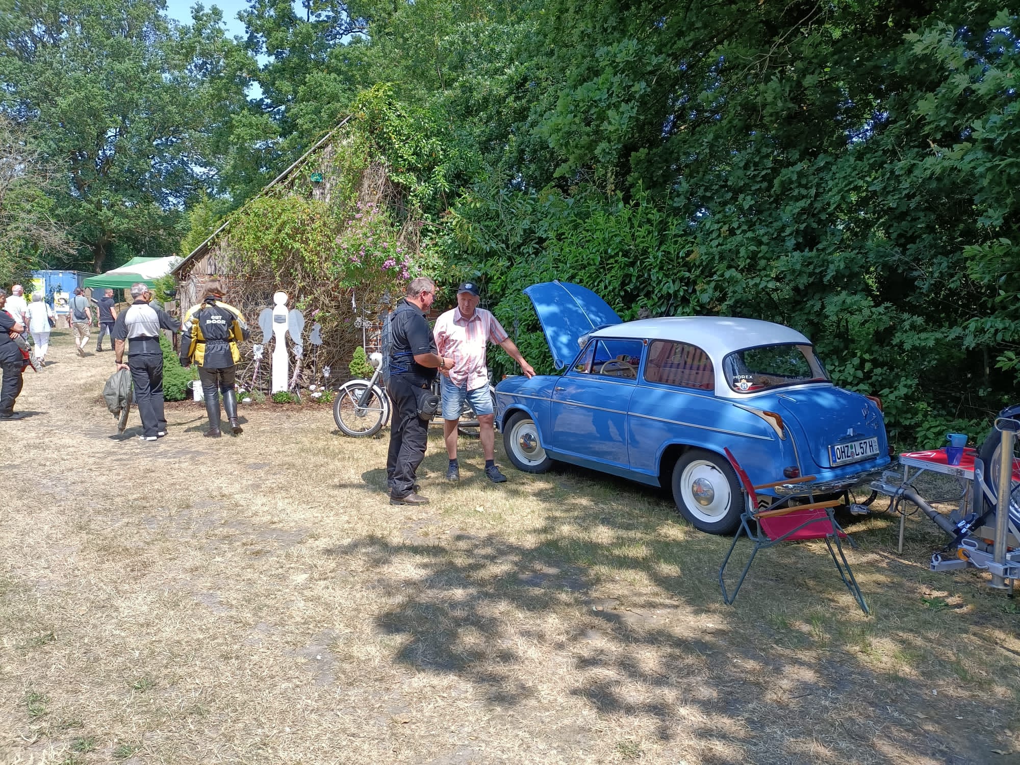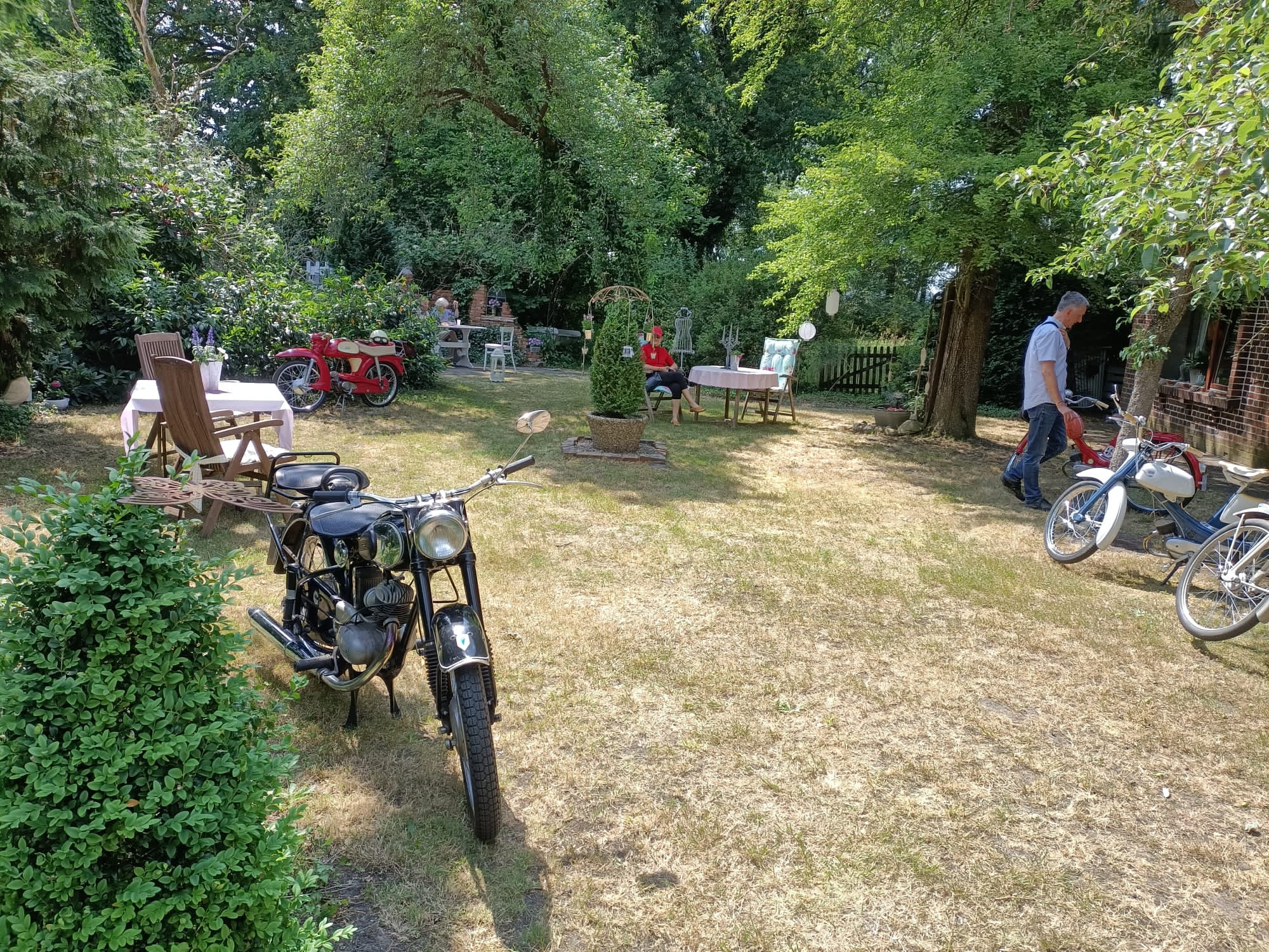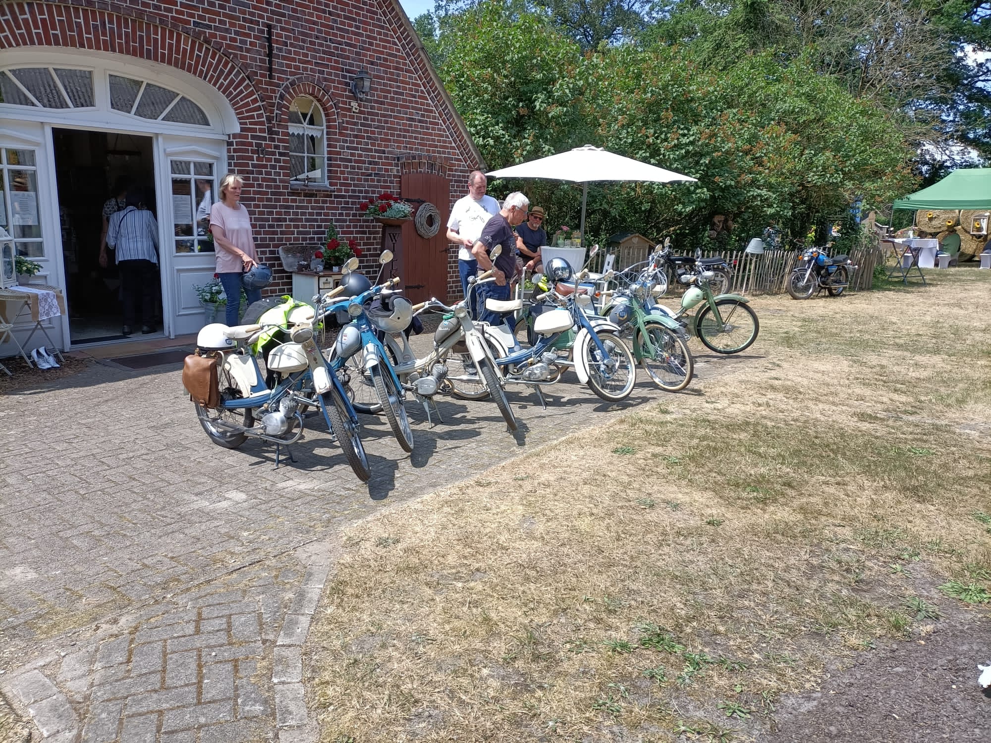 Über 330 Besucher nutzten an den beiden Tage die Möglichkeit, bei schönstem Wetter den idyllischen Garten des Hofes zu erkunden und bei Kaffee und Kuchen zu verweilen. Darüber hinaus gab es noch mehr Programm für die Gäste. Eine Ausstellung alter Mopeds, Motorräder und Autos aus den 50er und 60er Jahren bot Gelegenheit mit den Besitzern dieser fahrbaren Schätze ins Gespräch zu kommen. Auch die Schmiede war wieder in Betrieb und viele Besucher nutzten die Möglichkeit, selbst einmal auszuprobieren “ein heißes Eisen zu schmieden”.
